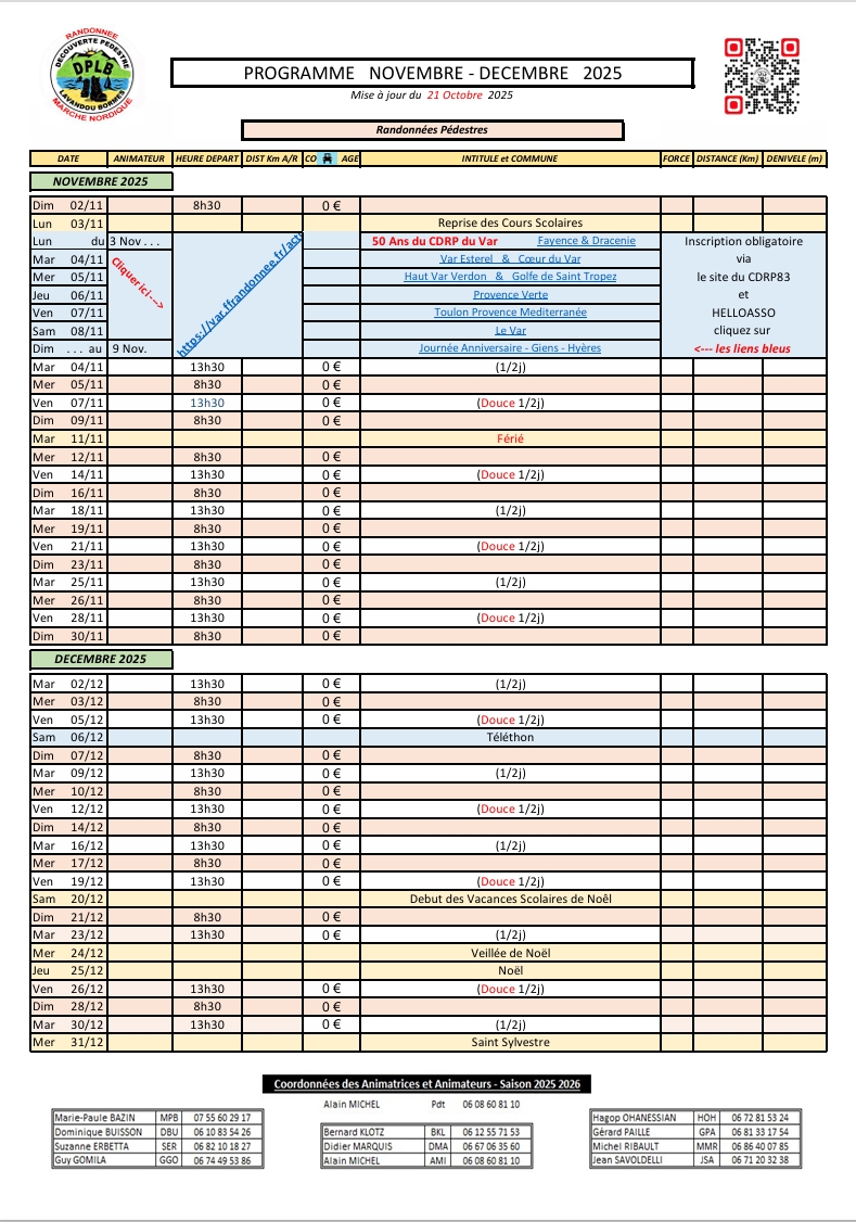 Programme Novembre Décembre 2025 (encours – intègre les 50 ans du CDRP) Version Photo < ici mais n’intègre pas les liens