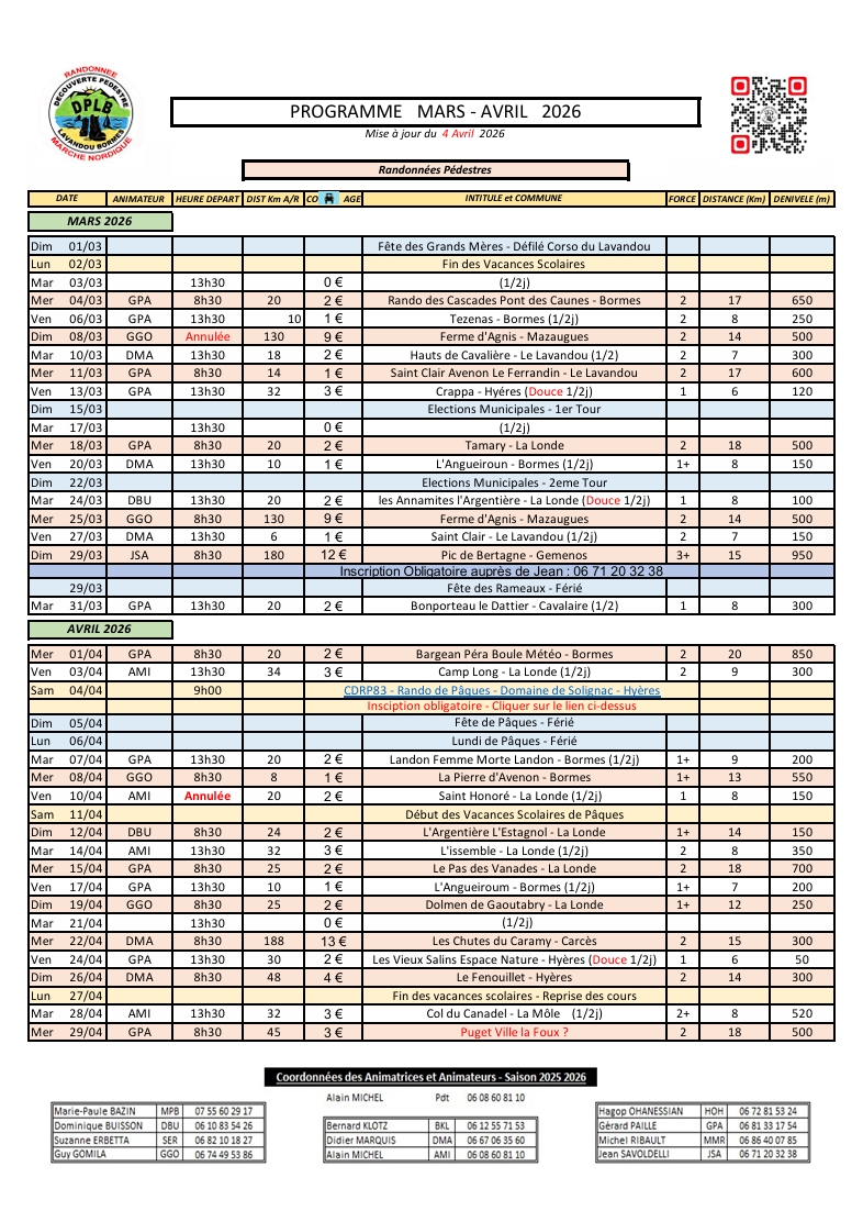 Programme Mars Avril 2026 (Modif. à venir) Version Photo <ici